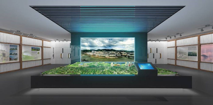 展館整體分為檔案陳列與史志地情兩大展區(qū),從序廳開始,依次布局有“歷史回眸,銘刻過往”、“蓬勃發(fā)展、百業(yè)俱興”及“振翅騰飛,翱翔天際”三大時間軸布局的檔案陳列展區(qū),以及“文物古跡”、“非遺精粹”、“地方名人”、“旅游資源”、“地方榮譽”、“友好互訪”、“史志成果”的地情方志展區(qū)。在該項目中,我們還專門設(shè)計開發(fā)了針對檔案陳列館類項目的專屬物理地情沙盤形式,成為了展館的最大亮點特色。