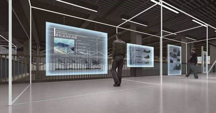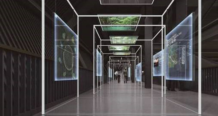 同時,這樣的設計保證了空間的通透性,尤其是在可以觀看中央大型排澇設施的三面走廊,我們在保證布展對觀看沒有大面積遮擋之外,還留出了最佳的觀看平臺。