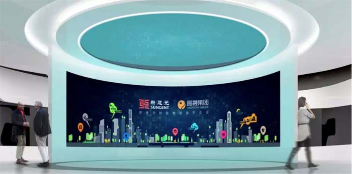 由于展廳面積有限,要在有限的空間表現(xiàn)豐富的內(nèi)容,以及表現(xiàn)內(nèi)容的動(dòng)態(tài)性,我們采用大屏幕放映,播放企業(yè)運(yùn)營(yíng)項(xiàng)目和建設(shè)成就影片,給參觀展廳者帶來強(qiáng)烈的視聽覺沖擊力,并能夠迅速置身“圓融氛圍”,感受圓融集團(tuán)的強(qiáng)勁實(shí)力、發(fā)展態(tài)勢(shì)和美好愿景。