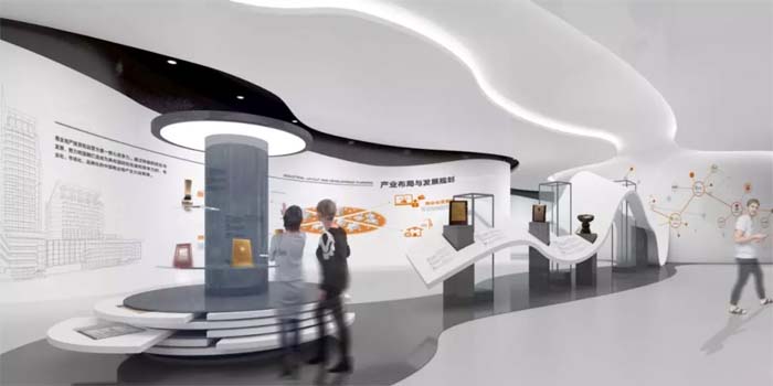 從企業(yè)理念出發(fā),展廳以“和”為整體設(shè)計(jì)核心,空間設(shè)計(jì)采用弧線造型,如同張開手臂環(huán)抱之勢(shì),寓意集團(tuán)為開創(chuàng)和諧共贏的輝煌未來做好準(zhǔn)備,同時(shí)凸顯“和合”的集團(tuán)愿景。