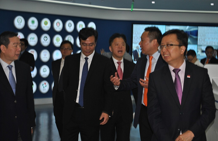 蘇州市委副書記、常務(wù)副市長周偉強(qiáng),新加坡駐滬總領(lǐng)事羅德偉參觀公司作品---麥迪斯頓智慧醫(yī)療體驗(yàn)館