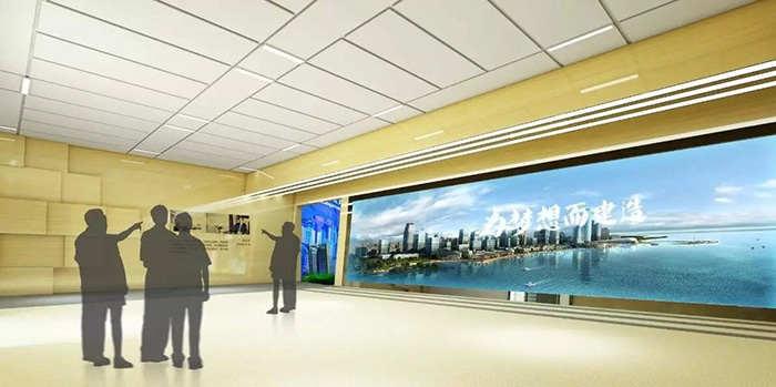 南通四建集團展廳以“為夢想而建造”主題,重點展示集團“志在巔峰”魯班獎立體空間光影秀。展廳以風格時尚簡約化、展示信息圖表化、展示形式數(shù)字化和參觀形式互動化為設(shè)計理念,給人以十足的科技感和未來感!
