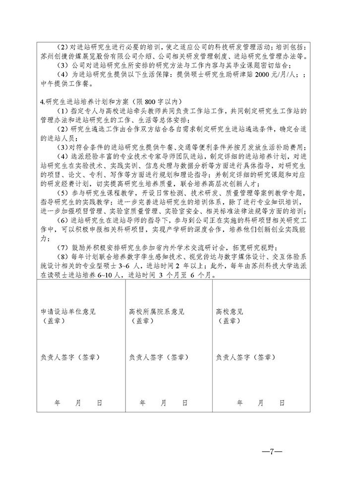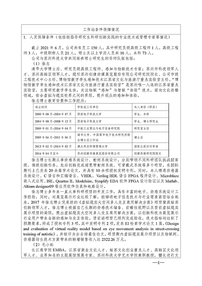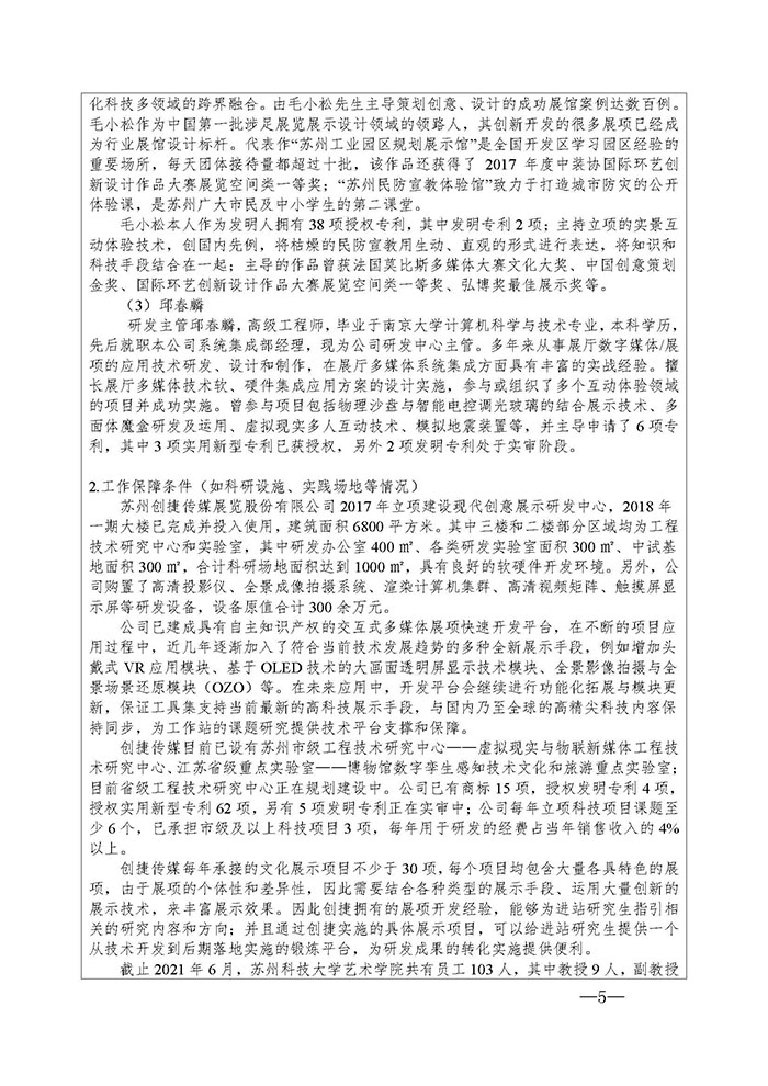 根據(jù)江蘇省教育廳辦公室、江蘇省科學(xué)技術(shù)廳辦公室《關(guān)于做好2021年江蘇省研究生工作站和江蘇省優(yōu)秀研究生工作站示范基地申報(bào)的通知》(蘇教辦研函〔2021〕4號(hào))、《江蘇省研究生工作站管理辦法》(蘇教研〔2019〕3號(hào))文件精神,為促進(jìn)科技協(xié)同創(chuàng)新與成果轉(zhuǎn)化,助力公司高質(zhì)量發(fā)展,公司擬與蘇州科技大學(xué)藝術(shù)學(xué)院開(kāi)展校企合作,共建江蘇省研究生工作站,現(xiàn)予公示,具體內(nèi)容見(jiàn)附件:《江蘇省研究生工作站申報(bào)書(shū)》。